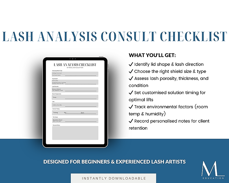 The Lash Analysis Checklist is designed for lash lift artists, beauty professionals, and salon owners who want to elevate their consultations, improve client results, and boost their confidence in lash lifting. Whether you're a beginner looking for guidance or an experienced artist refining your technique, this checklist will help you analyze lashes with precision and eliminate guesswork. This checklist will become your go-to consultation tool, ensuring every lash lift is executed with clarity, precision, and expertise.